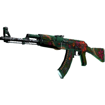 Powerful and reliable, the AK-47 is one of the most popular assault rifles in the world. It is most deadly in short, controlled bursts of fire. A custom paint job of an orange lotus has been hand painted over a green base.