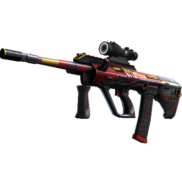 Powerful and accurate, the AUG scoped assault rifle compensates for its long reload times with low spread and a high rate of fire. It has been custom designed by renowned artist Syd Mead.