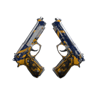 Firing two large-mag Berettas at once will lower accuracy and increase load times. On the bright side, you’ll get to fire two large-mag Berettas at once. It has been painted with a hydrographic in a contrasting yellow and blue pattern.