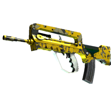 A cheap option for cash-strapped players, the FAMAS effectively fills the niche between more expensive rifles and the less-effective SMGs. It has been painted with a translucent hydrographic over a metallic base coat.