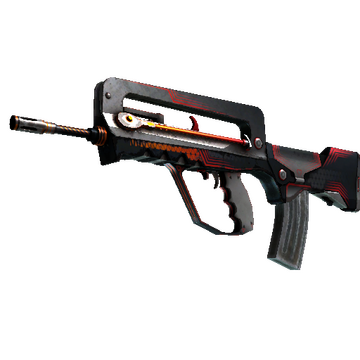 A cheap option for cash-strapped players, the FAMAS effectively fills the niche between more expensive rifles and the less-effective SMGs. It has been custom painted in a modern red and grey design that complements the weapon’s form.