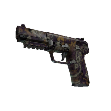 Highly accurate and armor-piercing, the pricy Five-Seven is a slow-loader that compensates with a generous 20-round magazine and forgiving recoil. It has been spray-painted with a flower pattern in purple and gold.