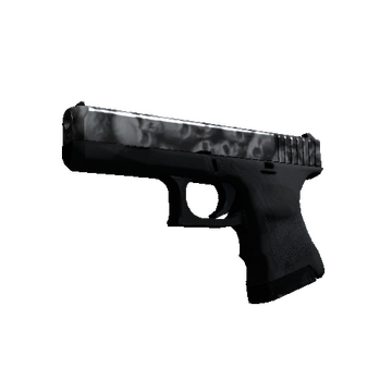 The Glock 18 is a serviceable first-round pistol that works best against unarmored opponents and is capable of firing three-round bursts. It has been painted using a hydrographic of skulls over a silver metallic paint base.