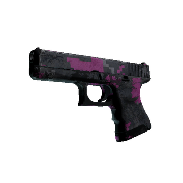 The Glock 18 is a serviceable first-round pistol that works best against unarmored opponents and is capable of firing three-round bursts. It has been painted using a Digital Disruptive Pattern (DDPAT) hydrographic.