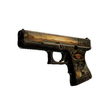 The Glock 18 is a serviceable first-round pistol that works best against unarmored opponents and is capable of firing three-round bursts. The Nile river has been custom painted on the slide and the grip depicts Ramesses I, the founding pharaoh of ancient Egypt’s 19th Dynasty.