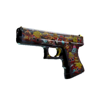 The Glock 18 is a serviceable first-round pistol that works best against unarmored opponents and is capable of firing three-round bursts. It has been custom painted to resemble junk food trinkets suspended in resin.