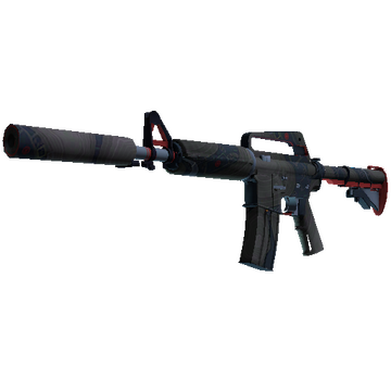 With a smaller magazine than its unmuffled counterpart, the silenced M4A1 provides quieter shots with less recoil and better accuracy. It has been given a hydrographic of a topographical map.