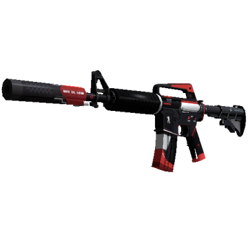 With a smaller magazine than its unmuffled counterpart, the silenced M4A1 provides quieter shots with less recoil and better accuracy. It has been custom painted with a high-tech design in black, white, and red.