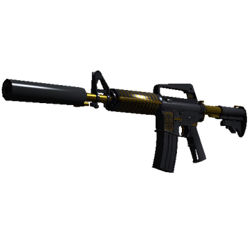 With a smaller magazine than its unmuffled counterpart, the silenced M4A1 provides quieter shots with less recoil and better accuracy. It has brass inlays with a renaissance armor theme.
