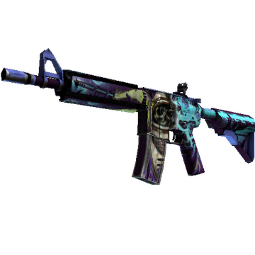 More accurate but less damaging than its AK-47 counterpart, the M4A4 is the full-auto assault rifle of choice for CTs. It has been custom painted with a space theme.