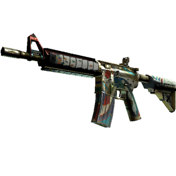 More accurate but less damaging than its AK-47 counterpart, the M4A4 is the full-auto assault rifle of choice for CTs. It has been custom painted with a white base, gold accents, and the Egyptian falcon god Horus.