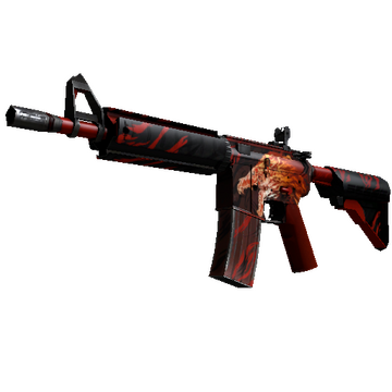 More accurate but less damaging than its AK-47 counterpart, the M4A4 is the full-auto assault rifle of choice for CTs. It has been custom painted with the image of a snarling wolf.