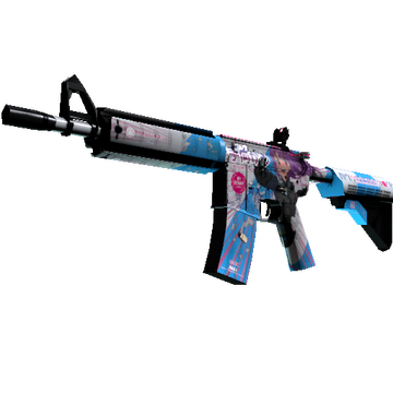 More accurate but less damaging than its AK-47 counterpart, the M4A4 is the full-auto assault rifle of choice for CTs. A custom paint job in the style of Japanese animation has been applied and depicts a female CT agent fighting against a T-side rush.
