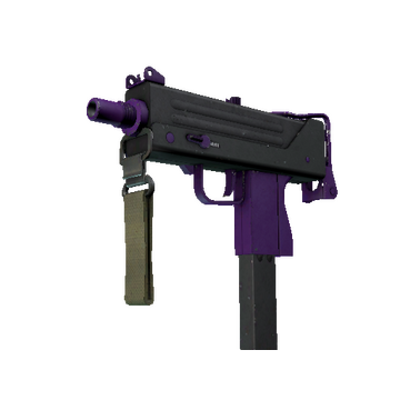 Essentially a box that bullets come out of, the MAC-10 SMG boasts a high rate of fire, with poor spread accuracy and high recoil as trade-offs. It has individual parts spray-painted solid colors in a black and purple color scheme.
